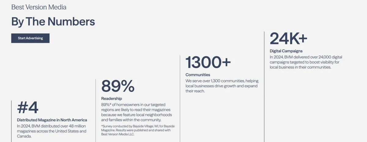 Powered by Best Version Media, our publications help local businesses increase visibility through a fully integrated approach by combining high-impact print, geo-targeted digital ads, and online presence management.